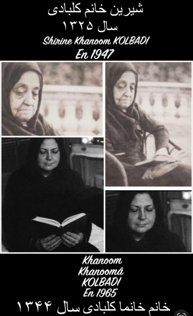 Malgré les épreuves et les blessures que la vie lui avait infligées, Khanoom Khanoomâ est toujours restée bienveillante et a continué ses actions de générosité. J’avais entendu beaucoup de choses à son sujet de la part des anciens et des aînés proches, qui me l’avaient raconté, mais moi-même aussi j’ai personnellement été témoin d’autres nobles gestes de ma chère maman… Elle m’a appris à être toujours donneuse dans la vie, et non receveuse.