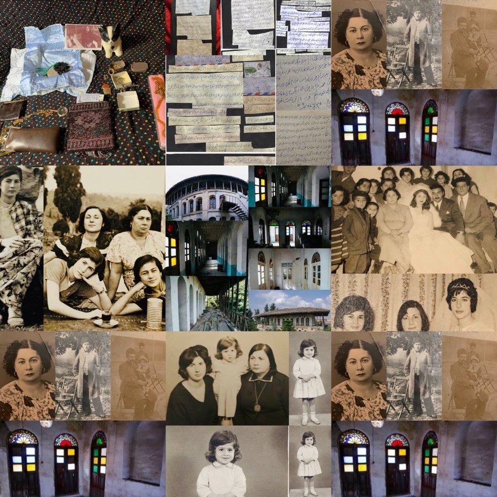 Grâce aux anciennes et magnifiques photos que ma maman m’avait confiées à l’adolescence, j’ai pu créer une image vivante et impérissable de moi-même et de ma chère maman, Khanoom Khanoomâ Kolbadi. Ces souvenirs sont porteurs des mémoires et de l’amour d’une mère plus précieuse que tout dans ma vie ; un amour qui est à la fois douleur et lumière, le guide de mon existence et la lampe d’espérance dans mon cœur. Chaque regard porté sur ces photos me rappelle des instants purs et l’amour infini qu’elle m’a donné, et me donne la force de garder pour toujours vivant cet héritage si précieux.