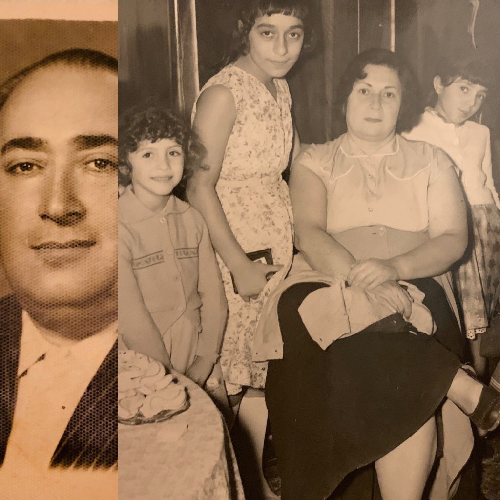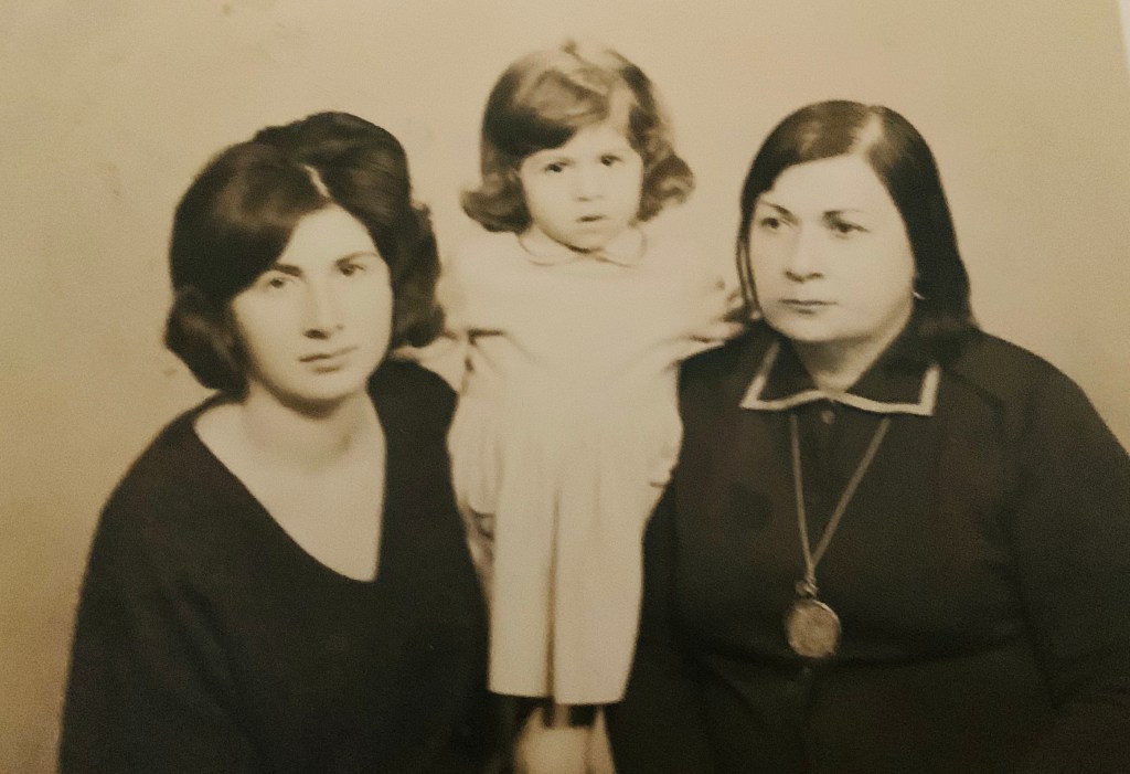 Maman avec ses premiers filles simin et Mahssim en 1950