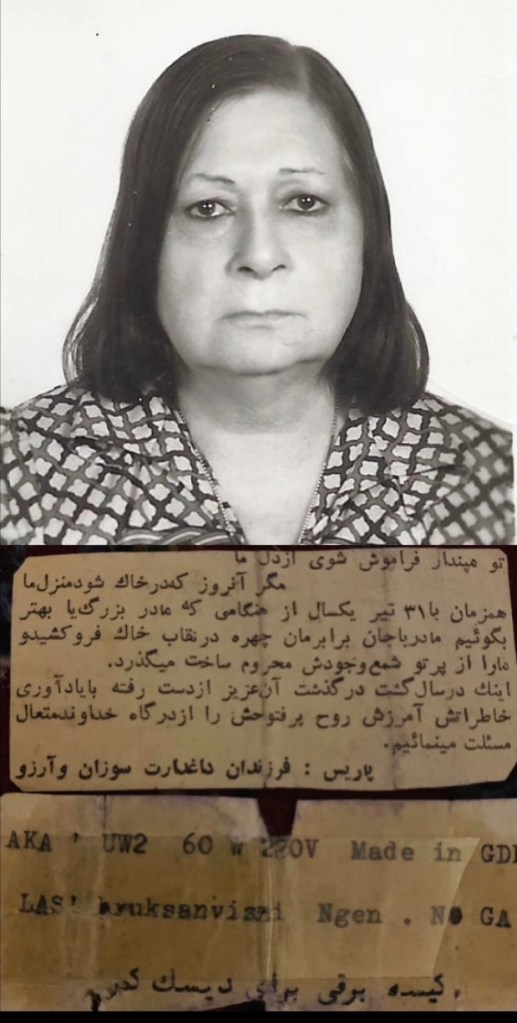 Maman est partie….Ses souvenirs restent….Soozan reste….Arézou reste….