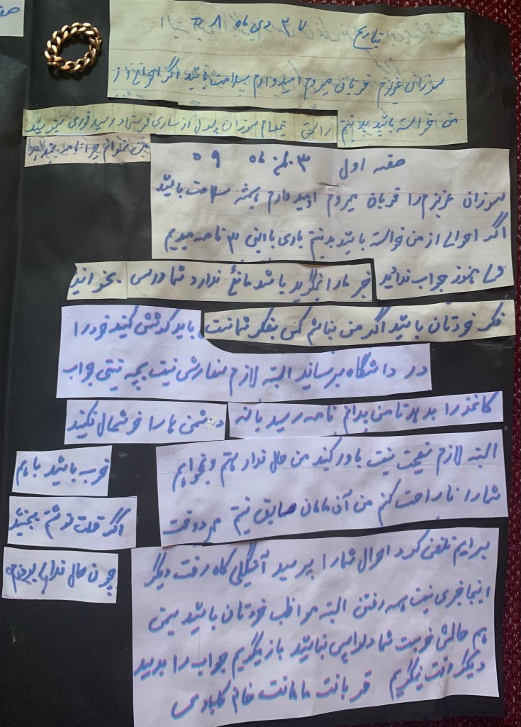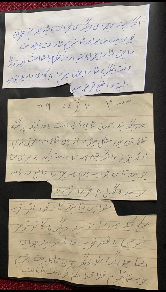 Maman dans ses lettres nous a écrit « qu’elle demanderait toujours nos nouvelles et comment nous allions »..,,contrairement au nouvelle personne qui vivaient dans notre maison « MOZAYEN OL DOLEH » et passait devant la chambre de Maman en faisant semblant de ne même pas nous existerons et même pour faire plaisir à Maman , elle ne poser pas de questions sur nous. Ceci a été écrit par ma Maman dans une de ses lettres à moi et le comportement de cette personne lui rendrait triste