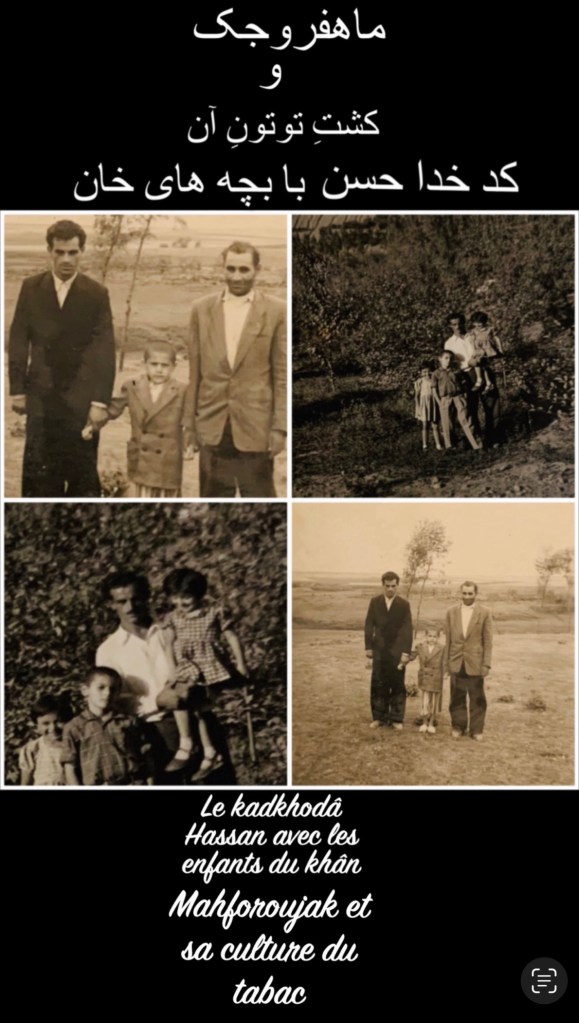 Ce qui demeure dans la mémoire familiale, et que l’on peut reconstituer à la lumière des connaissances historiques de la région, montre que Mahforoujak n’était pas seulement le lieu d’élevage de la famille Kolbadi, mais constituait également un espace vivant d’activités quotidiennes variées. Bien qu’aucune mention explicite de la «culture du tabac par les Kolbadi à Mahforoujak« n’apparaisse dans les documents officiels, les récits oraux familiaux ainsi que les traces subsistantes renforcent l’hypothèse de l’existence de cette activité.