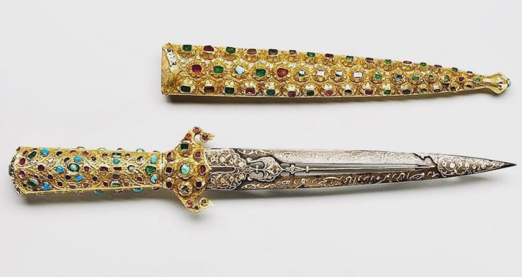 Poignard doré ottoman de Sardar Jalil KOLBADI avec ses belles pierres offert au arrière arrière petit-fils de Sardar Jalil
